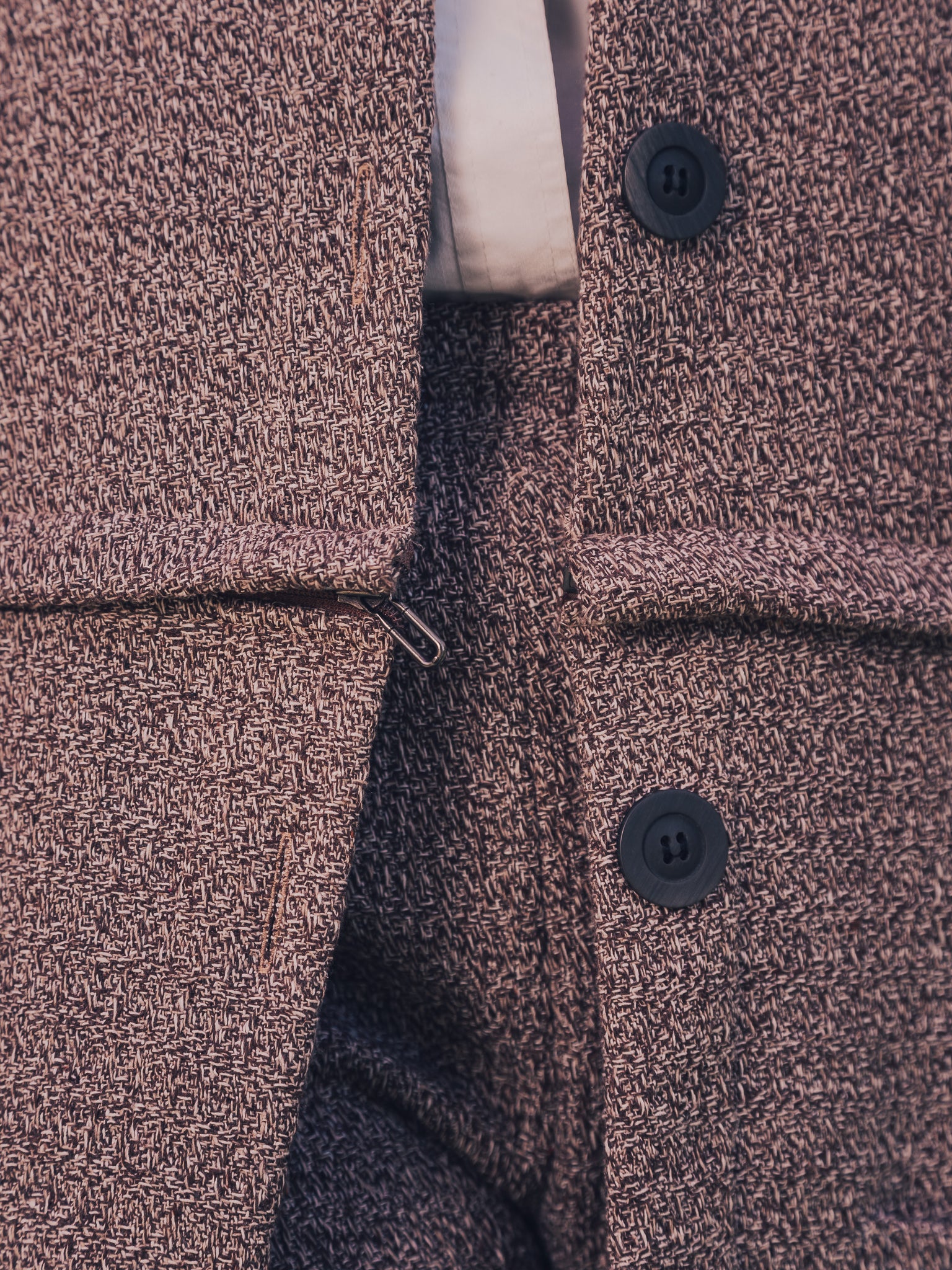 This set transitions effortlessly between three lengths — vest, cropped jacket, and full-length coat — and can be worn with or without sleeves thanks to smooth zipper attachments.